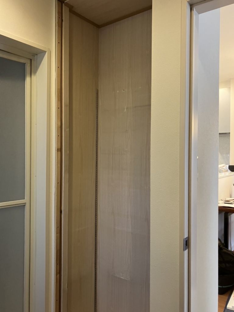折れ戸、建具枠、固定棚はすべて取外し撤去