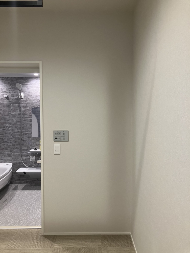 お風呂の入口の横にレイアウトした、タオルストッカー&ランドリーシューターです。