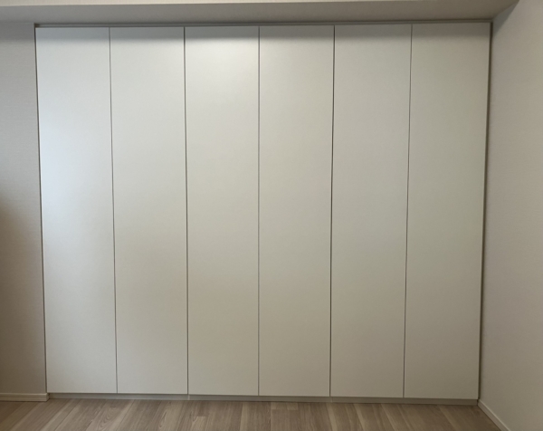 壁いっぱいに白い壁面収納